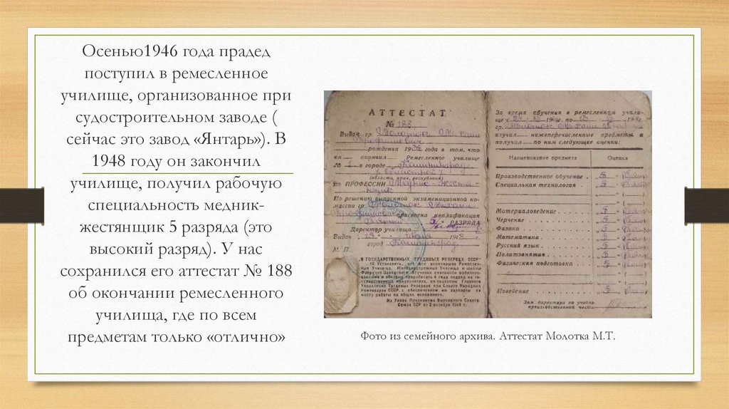 Осенью1946 года прадедпоступил в ремесленное