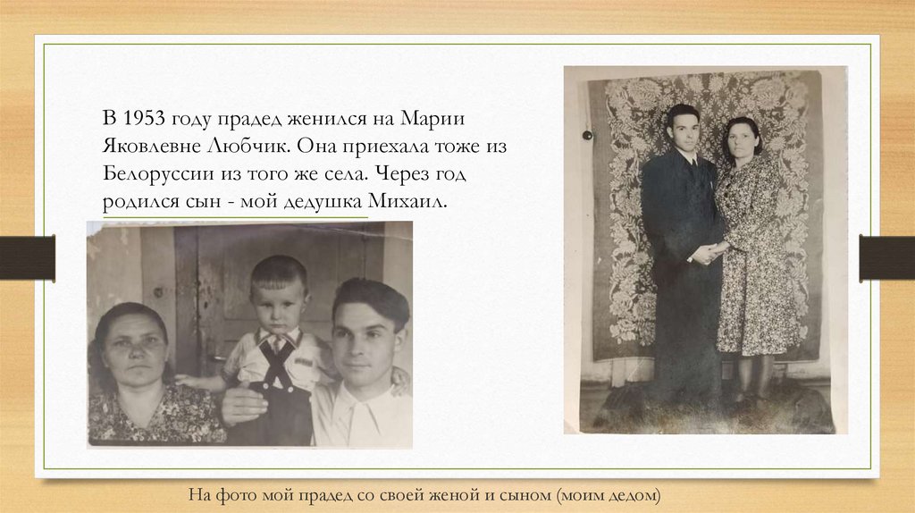 В 1953 году прадед женился на МарииЯковлевне Любчик. Она приехала тоже из