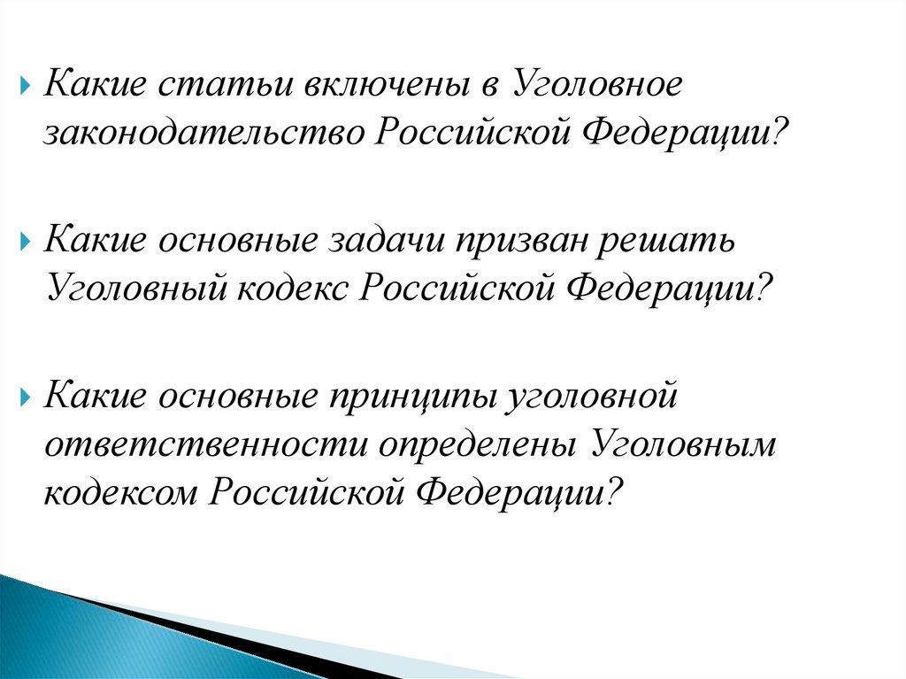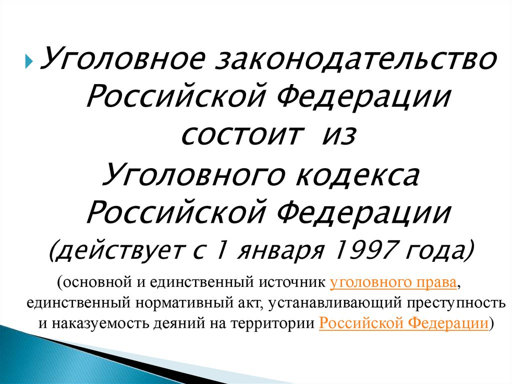 Какие статьи включены в Уголовноезаконодательство Российской Федерации?