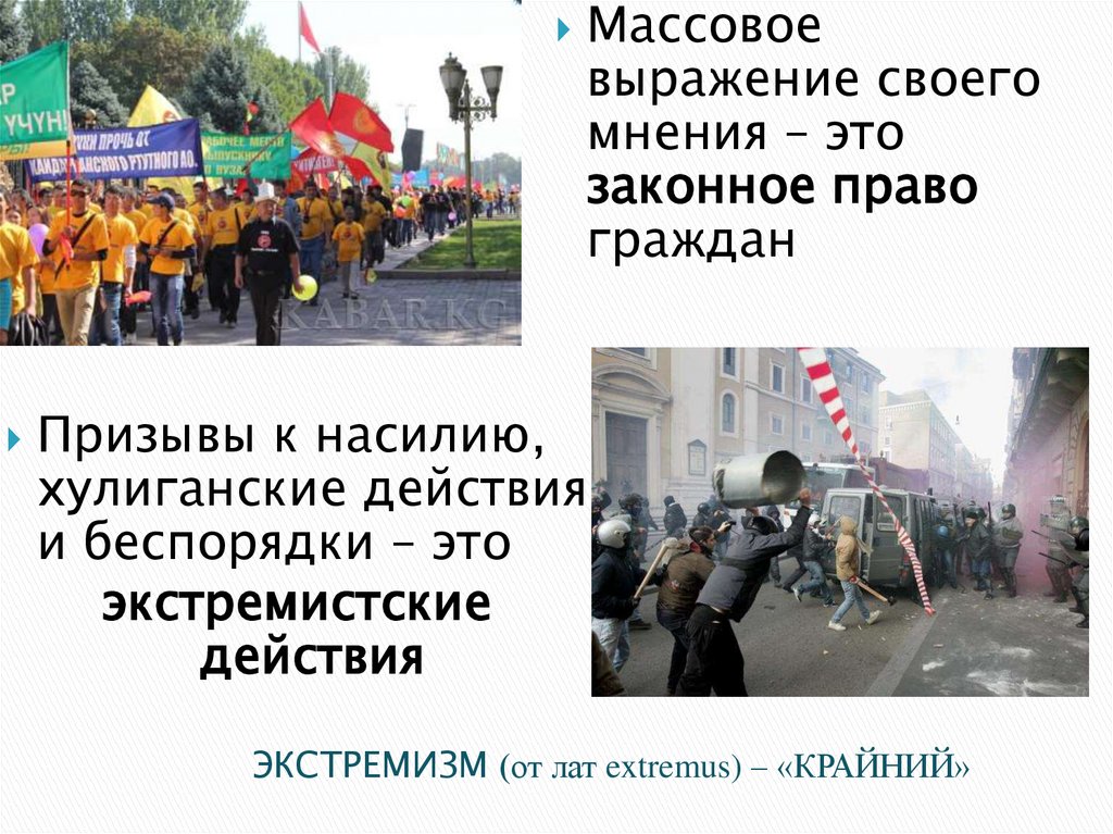 ЭКСТРЕМИЗМ (от лат extremus) – «КРАЙНИЙ»