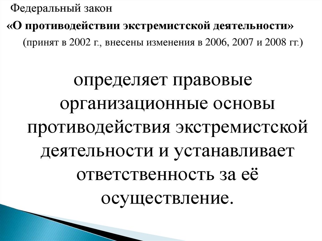 Согласно данному закону, лицу, участвовавшемув осуществлении экстремистской деятельности,