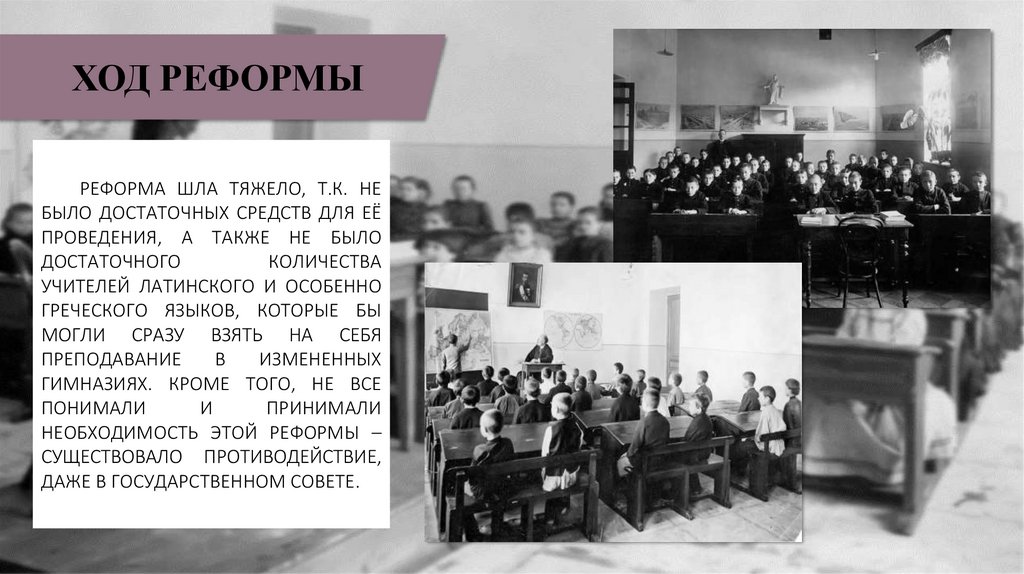 ХОД РЕФОРМЫРЕФОРМА ШЛА ТЯЖЕЛО, Т.К. НЕ