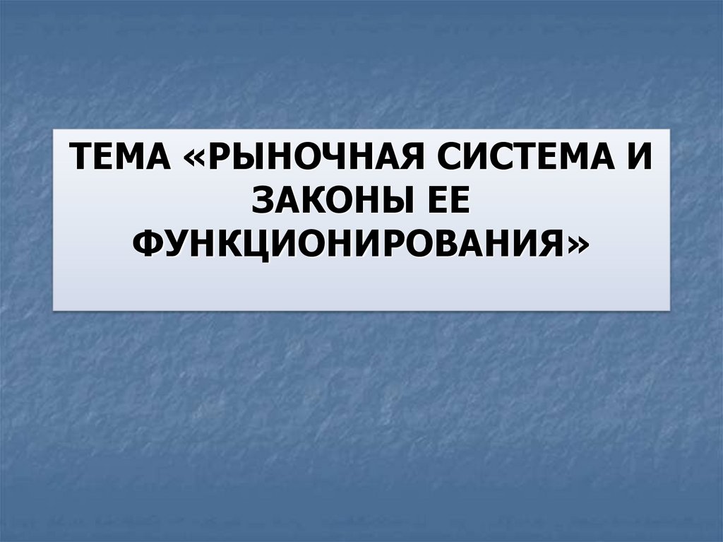 ТЕМА «РЫНОЧНАЯ СИСТЕМА ИЗАКОНЫ ЕЕ