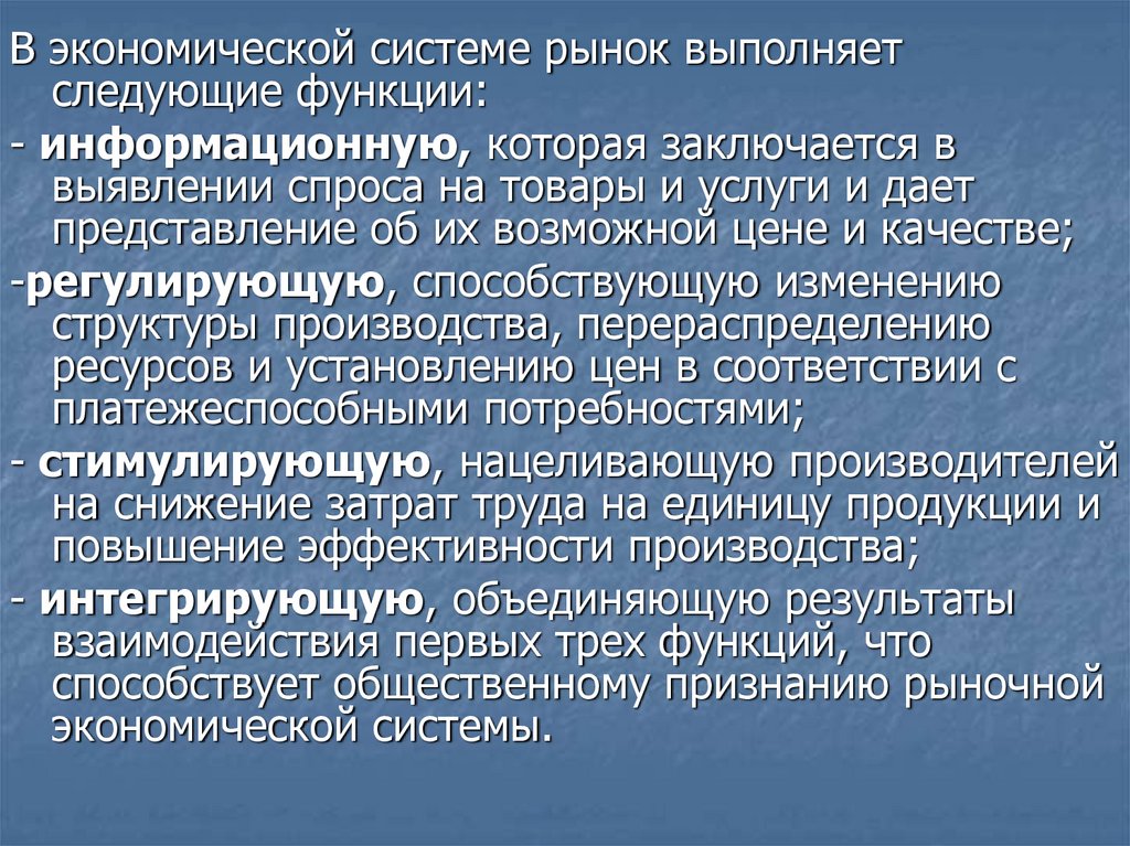 В экономической системе рынок выполняетследующие функции: