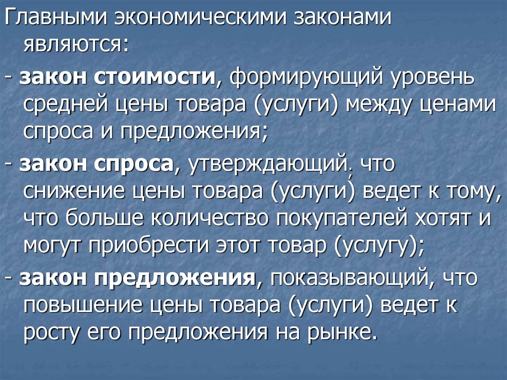 Главными экономическими законамиявляются: