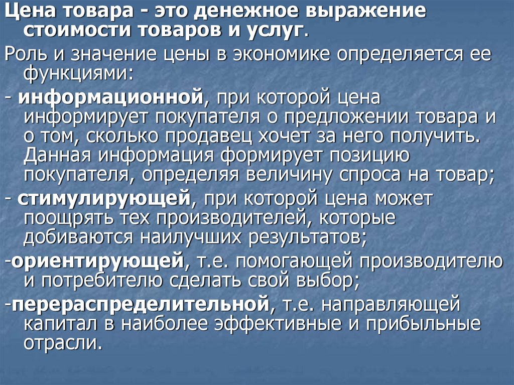 Роль и значение цены в экономике определяется ее