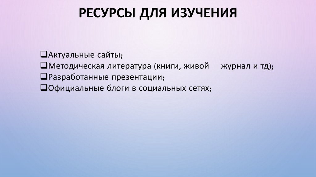 РЕСУРСЫ ДЛЯ ИЗУЧЕНИЯАктуальные сайты;