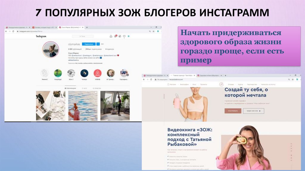 7 ПОПУЛЯРНЫХ ЗОЖ БЛОГЕРОВ ИНСТАГРАММНачать придерживаться