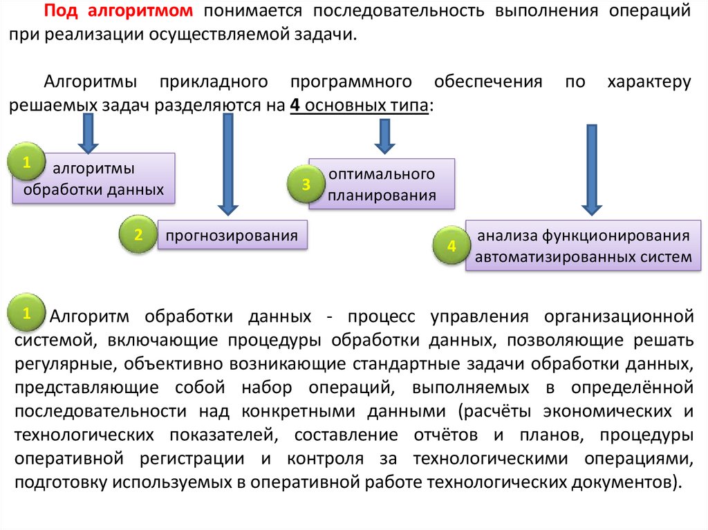 Под алгоритмом понимается последовательность выполнения операцийпри реализации осуществляемой задачи.