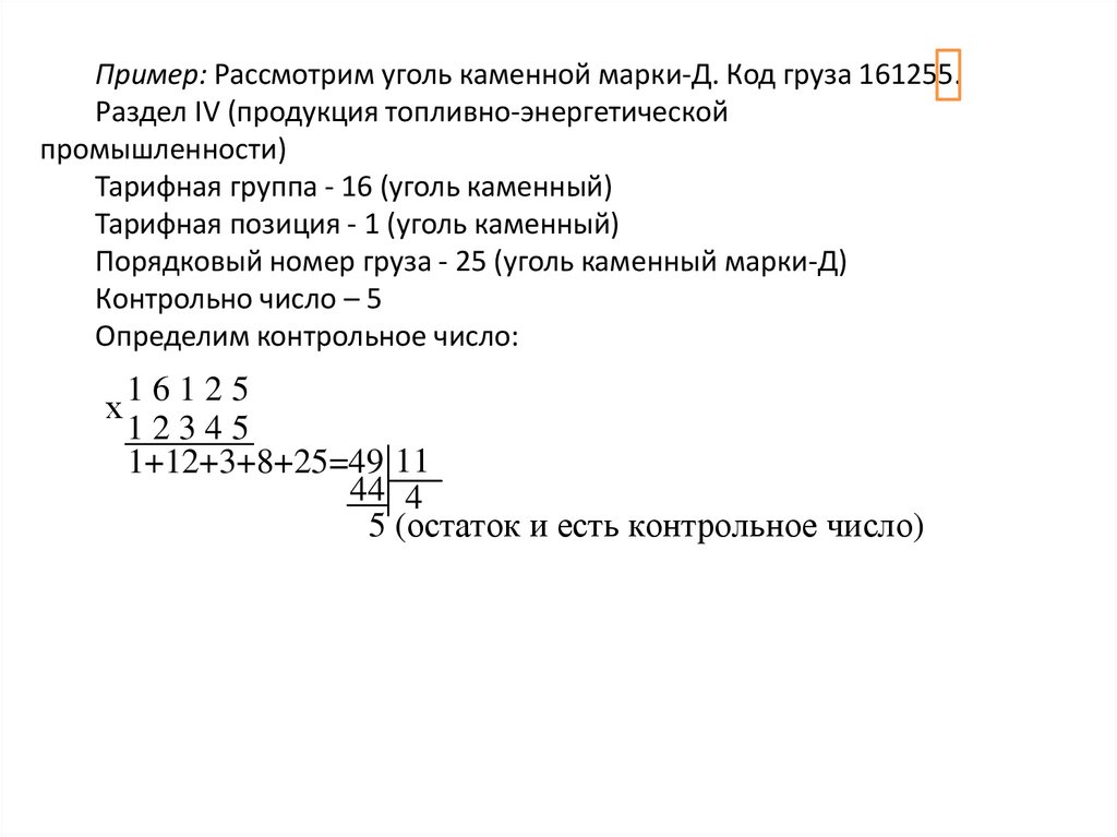 Пример: Рассмотрим уголь каменной марки-Д. Код груза 161255.Раздел IV (продукция топливно-энергетической