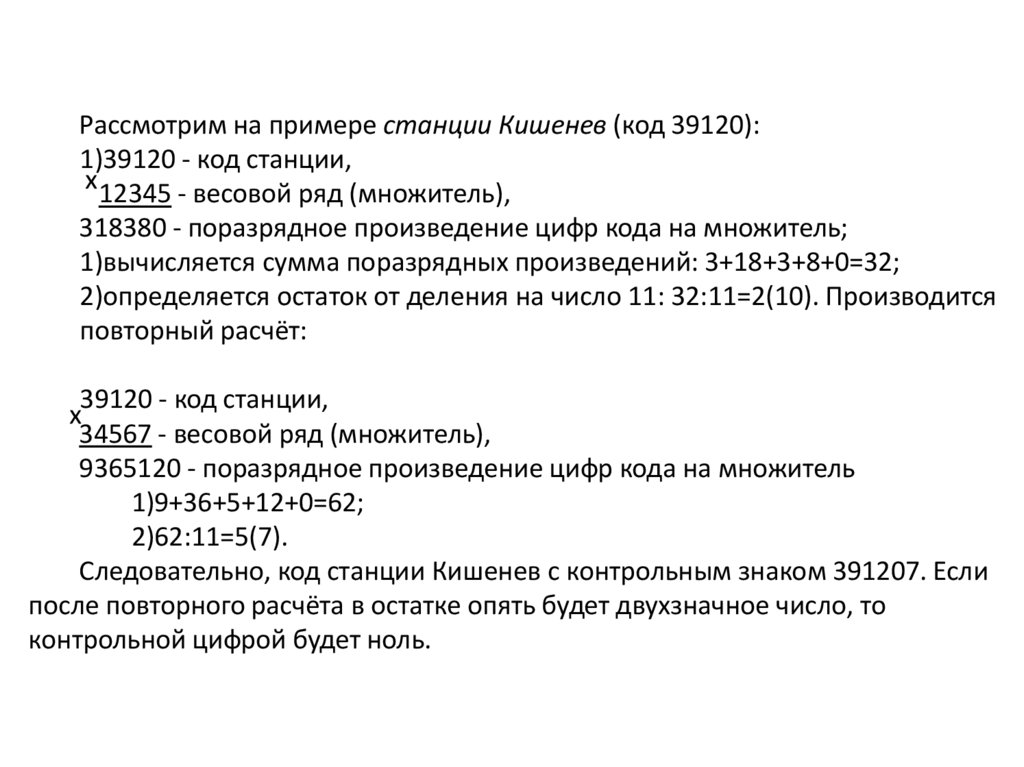 Следовательно, код станции Кишенев с контрольным знаком 391207. Если