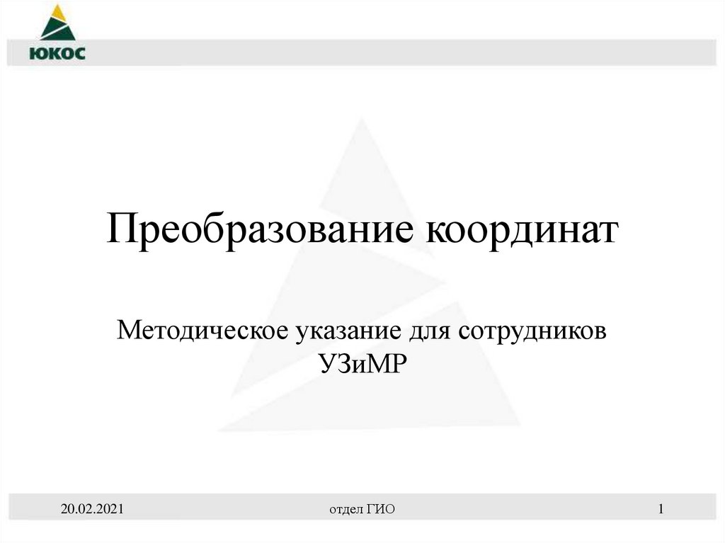 Преобразование координат. Методическое указание для сотрудников УЗиМР