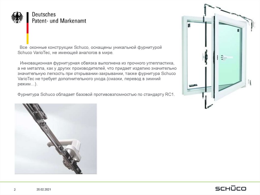Фурнитура Schuco обладает базовой противовзломностью по стандарту RC1.