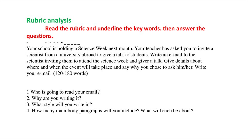 Rubric analysisRead the rubric and underline the key words. then answer the