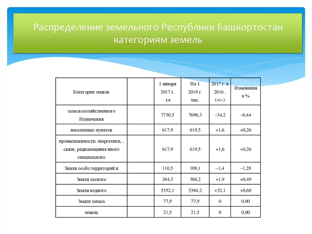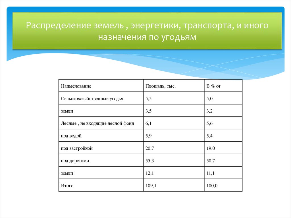 Распределение земель , энергетики, транспорта, и иногоназначения по угодьям