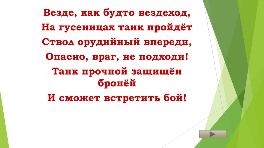 Везде, как будто вездеход,На гусеницах танк пройдёт