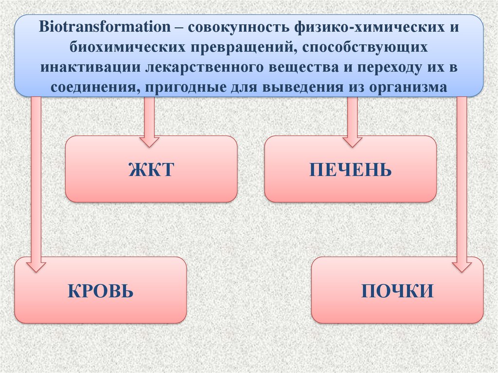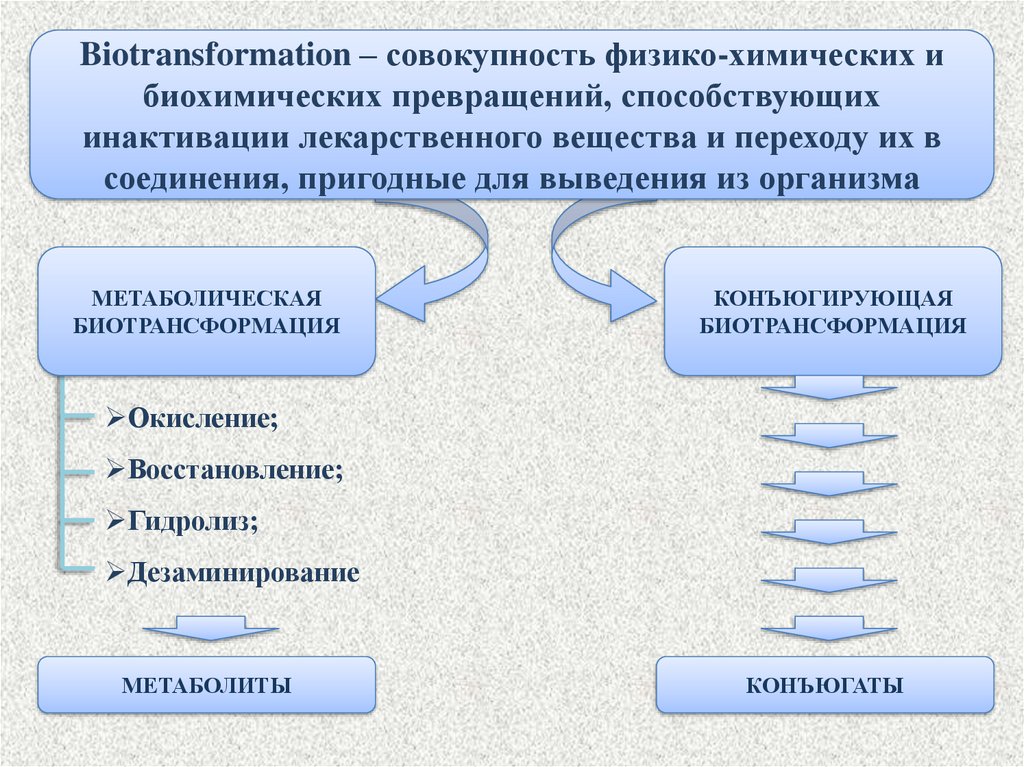 Biotransformation – совокупность физико-химических ибиохимических превращений, способствующих