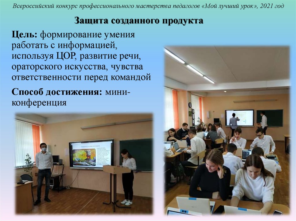 Всероссийский конкурс профессионального мастерства педагогов «Мой лучший урок», 2021 годЗащита созданного продукта