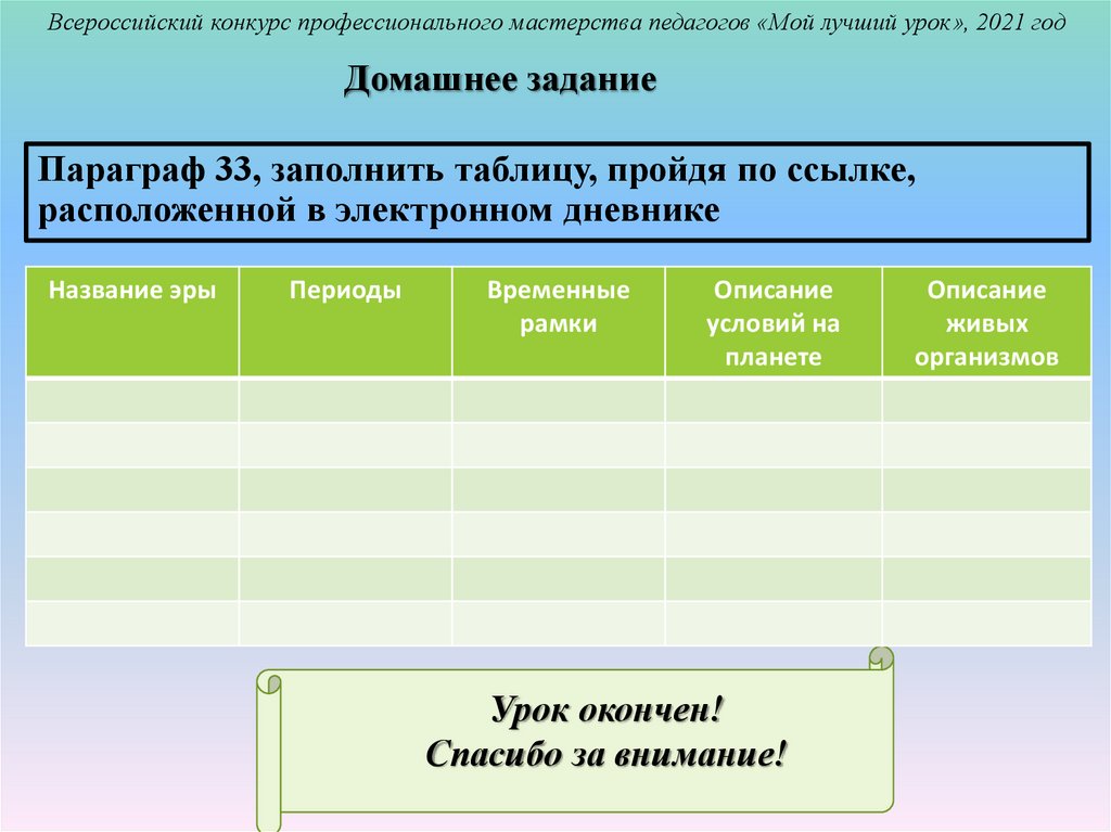 Всероссийский конкурс профессионального мастерства педагогов «Мой лучший урок», 2021 годДомашнее задание