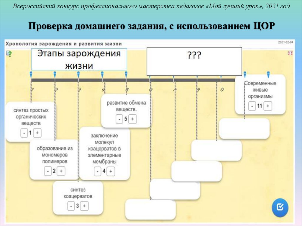 Всероссийский конкурс профессионального мастерства педагогов «Мой лучший урок», 2021 годПроверка домашнего задания, с использованием ЦОР