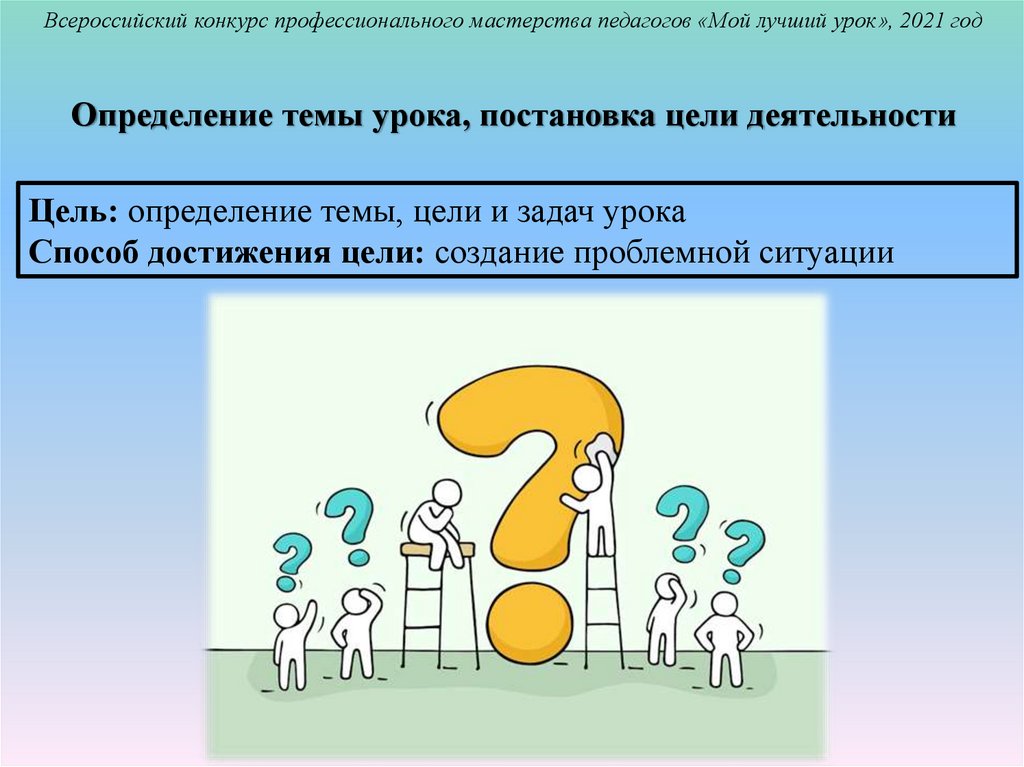 Всероссийский конкурс профессионального мастерства педагогов «Мой лучший урок», 2021 годОпределение темы урока, постановка цели деятельности