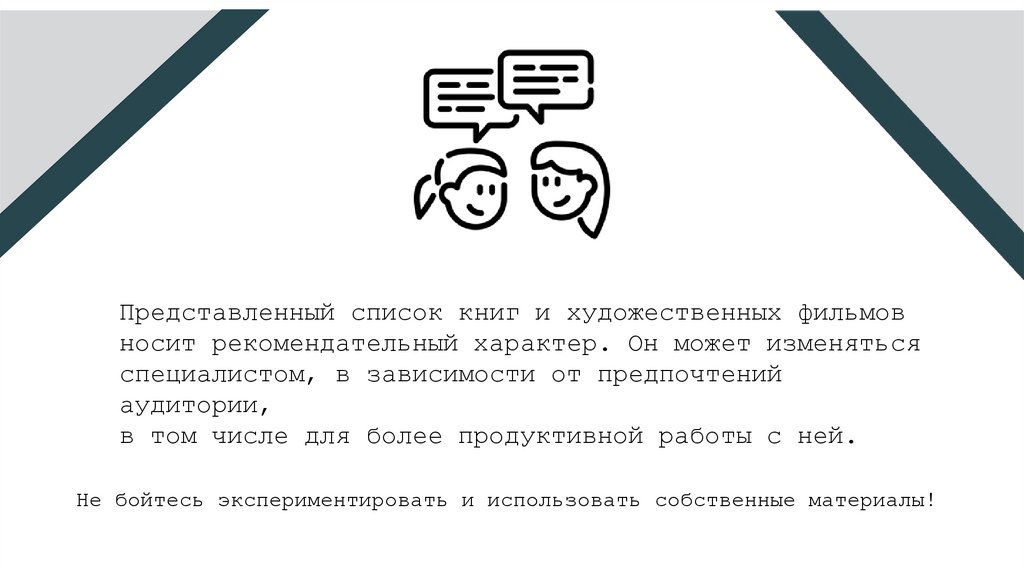 Представленный список книг и художественных фильмовносит рекомендательный характер. Он может изменяться