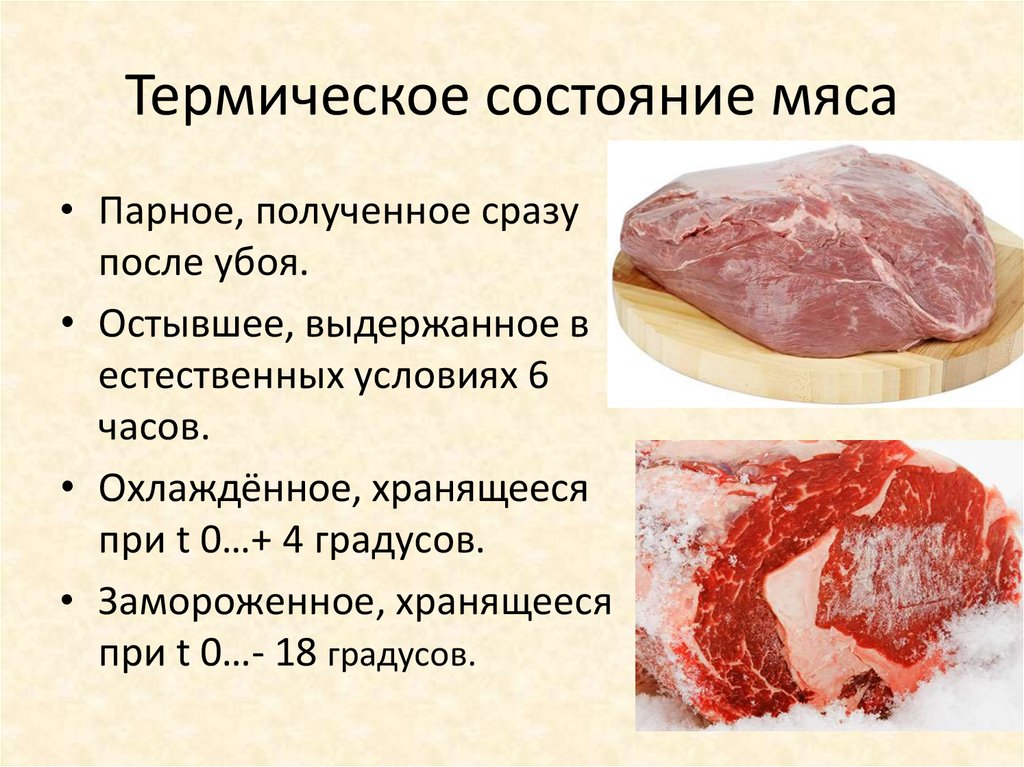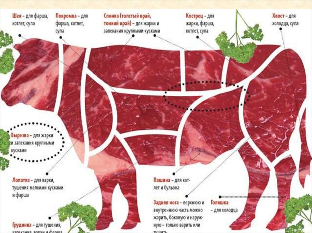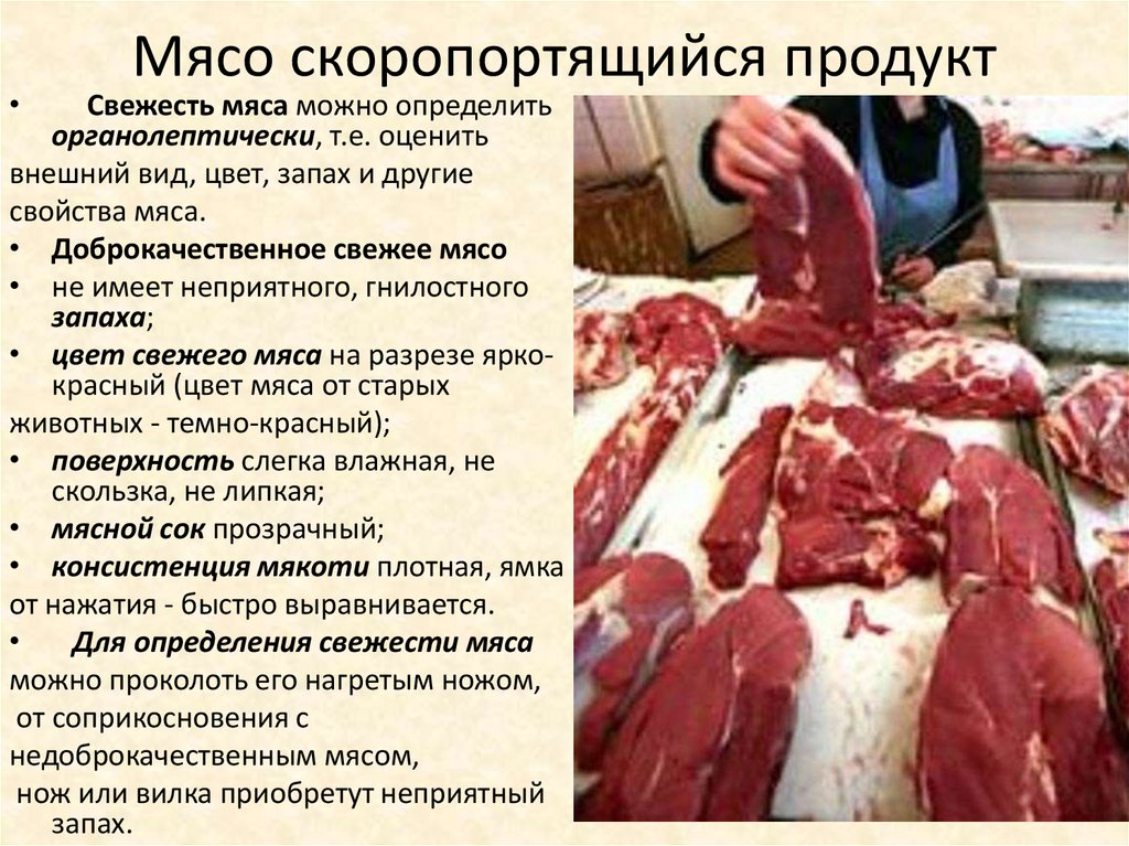 • цвет свежего мяса на разрезе яркокрасный (цвет мяса от старых