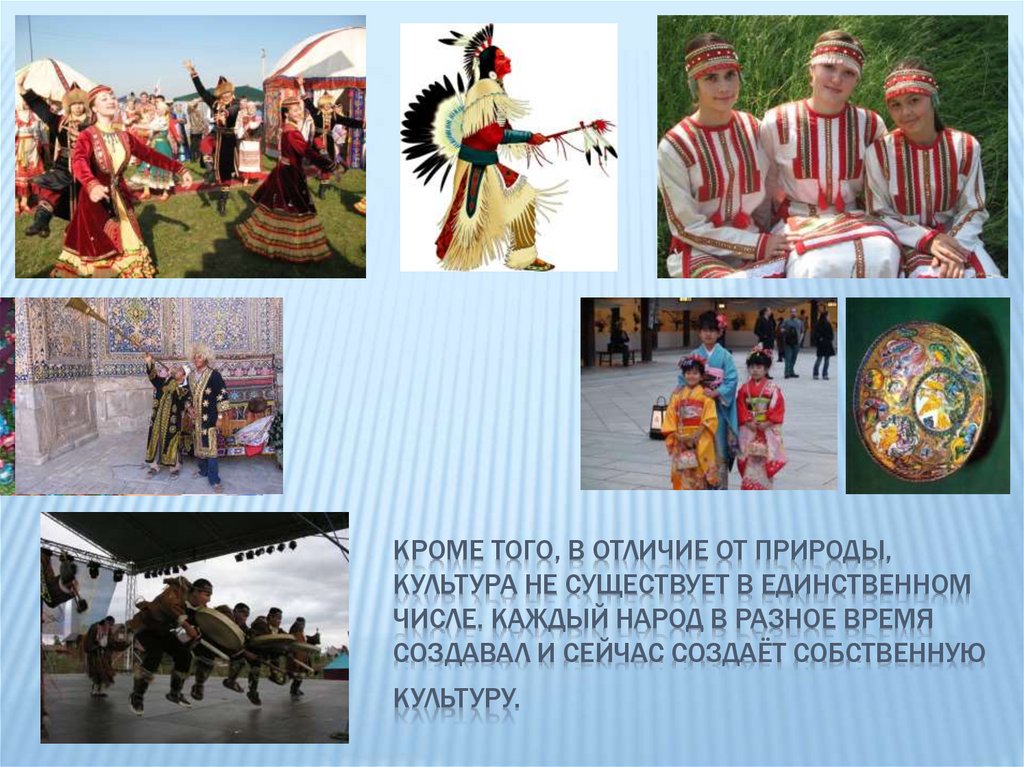 КРОМЕ ТОГО, В ОТЛИЧИЕ ОТ ПРИРОДЫ,КУЛЬТУРА НЕ СУЩЕСТВУЕТ В ЕДИНСТВЕННОМ