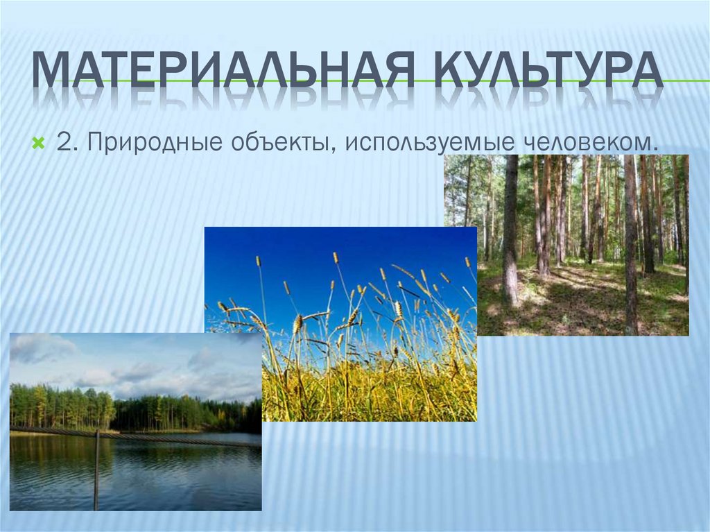 МАТЕРИАЛЬНАЯ КУЛЬТУРА2. Природные объекты, используемые человеком.