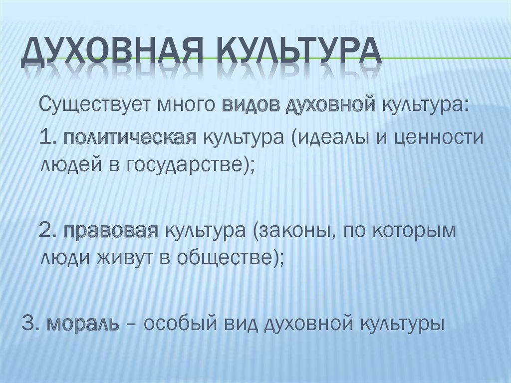 ДУХОВНАЯ КУЛЬТУРАСуществует много видов духовной культура: