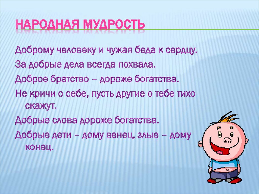 НАРОДНАЯ МУДРОСТЬДоброму человеку и чужая беда к сердцу.