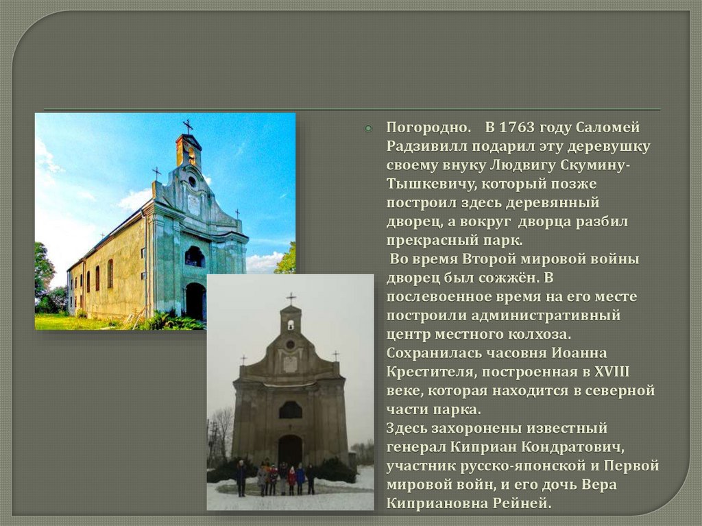 Погородно. В 1763 году СаломейРадзивилл подарил эту деревушку