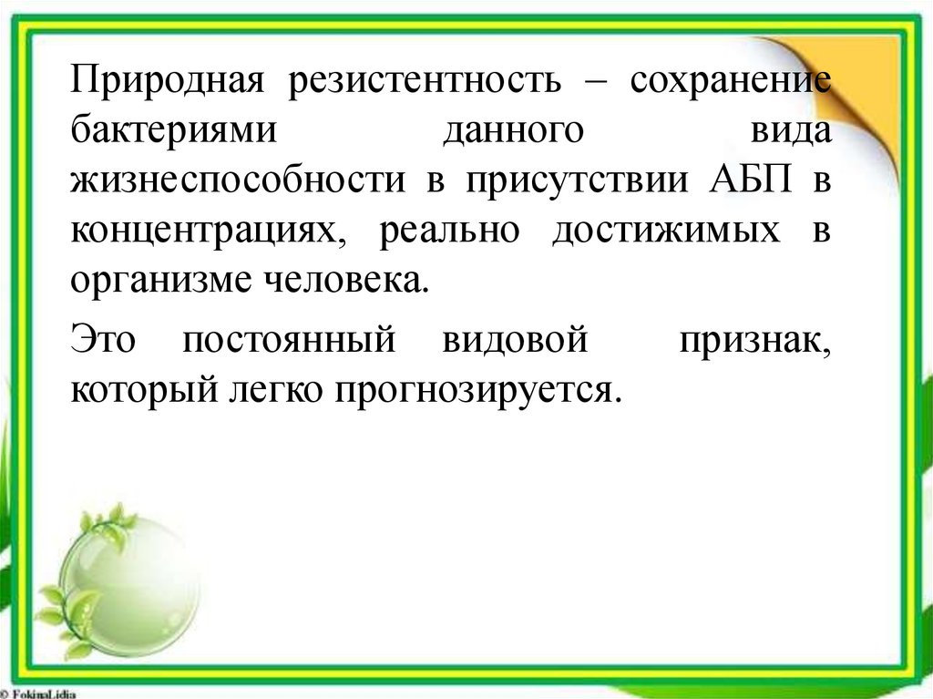 Природная резистентность – сохранениебактериями