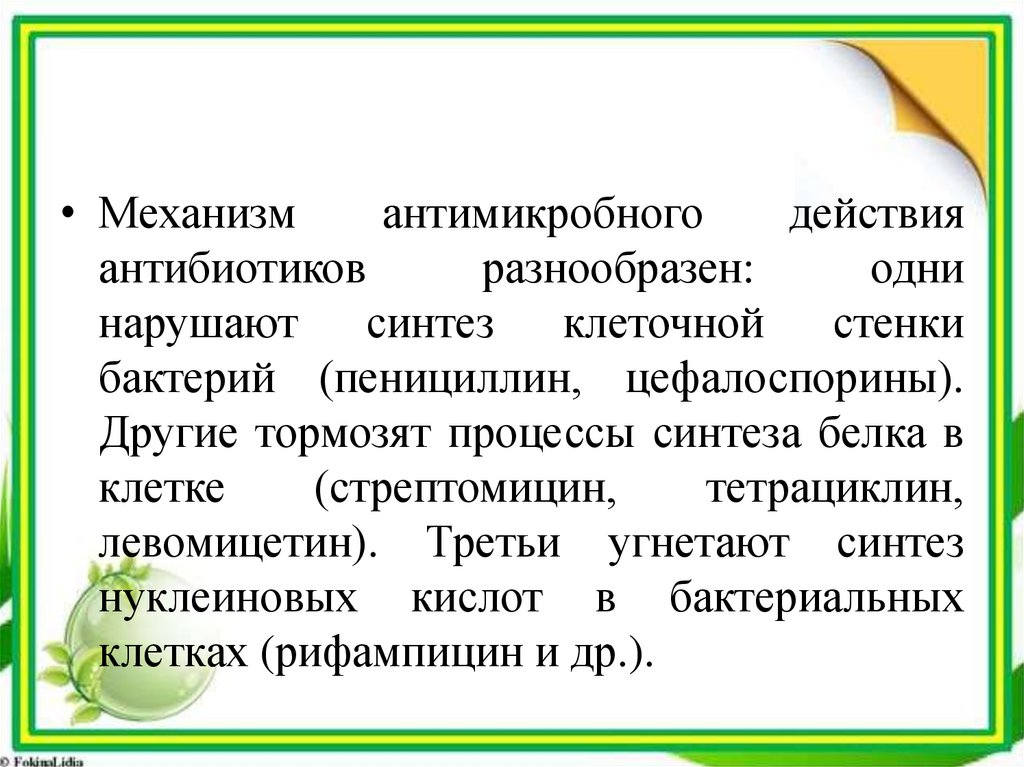 • Механизмантимикробного