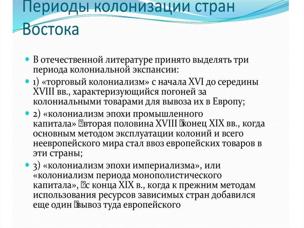 Периоды колонизации стран Востока