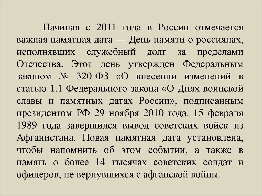 Афганистана. Новая памятная дата установлена,