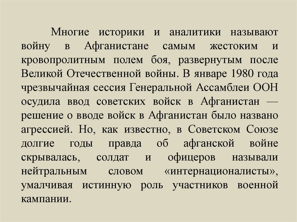 Многие историки и аналитики называютвойну в Афганистане самым жестоким и
