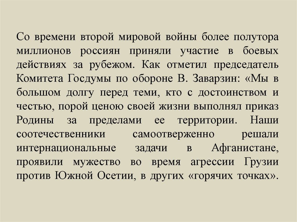 Со времени второй мировой войны более полуторамиллионов россиян приняли участие в боевых