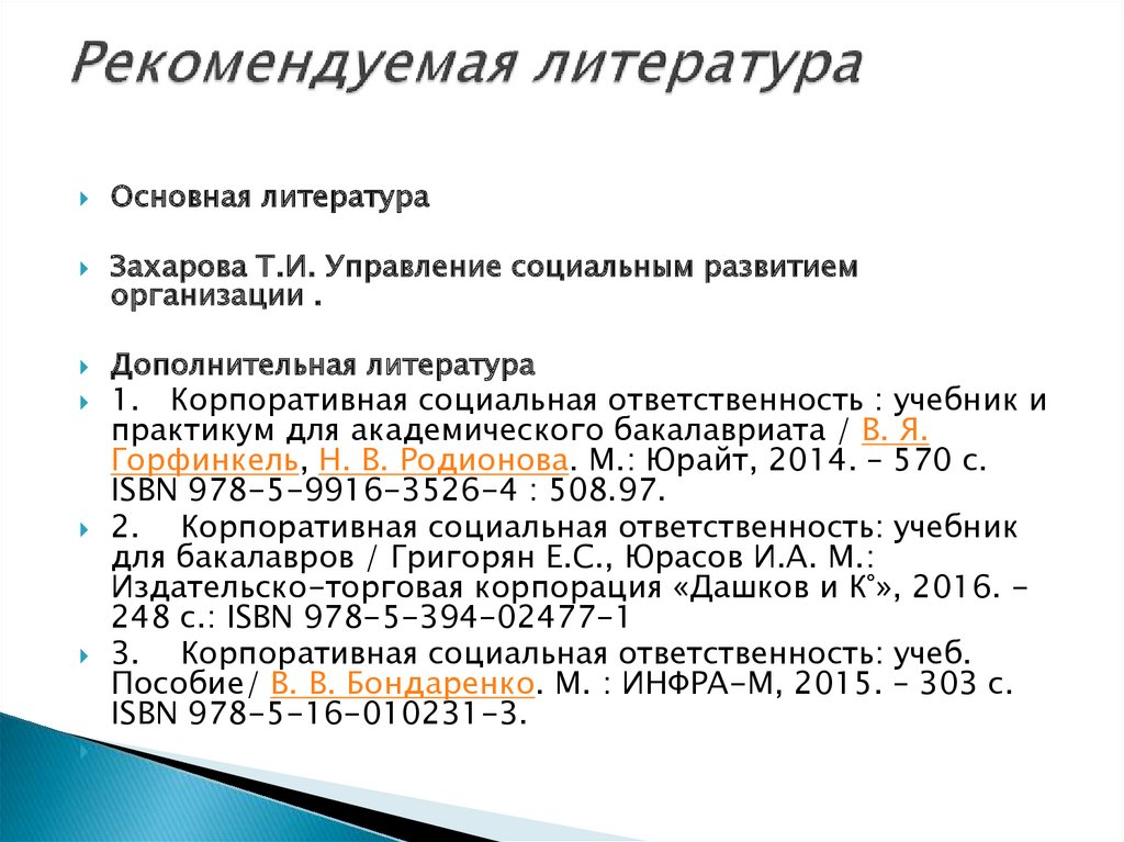 Основная литератураЗахарова Т.И. Управление социальным развитием