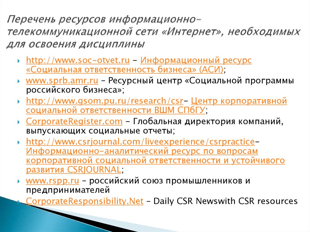 http://www.csrjournal.com/liveexperience/csrpracticeИнформационно-аналитический ресурс по вопросам