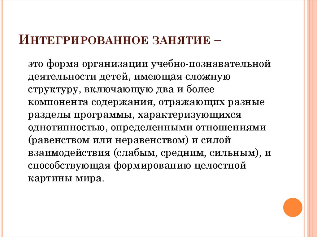 ИНТЕГРИРОВАННОЕ ЗАНЯТИЕ –это форма организации учебно-познавательной