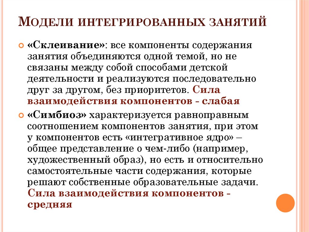 МОДЕЛИ ИНТЕГРИРОВАННЫХ ЗАНЯТИЙ«Склеивание»: все компоненты содержания