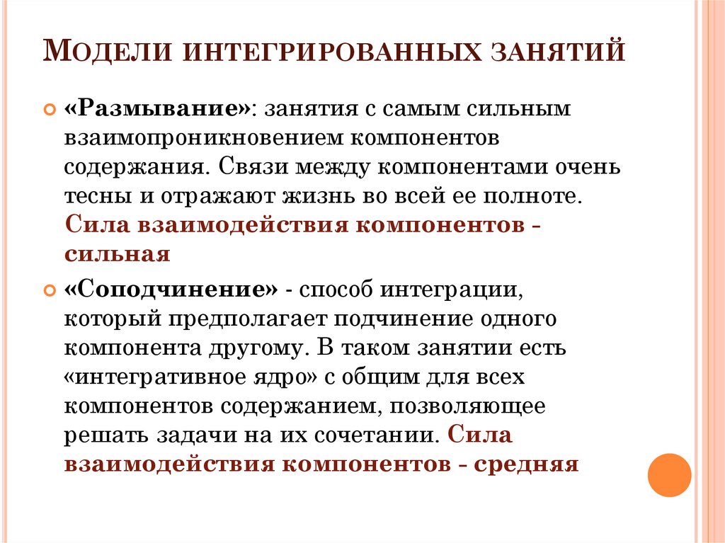 МОДЕЛИ ИНТЕГРИРОВАННЫХ ЗАНЯТИЙ«Размывание»: занятия с самым сильным