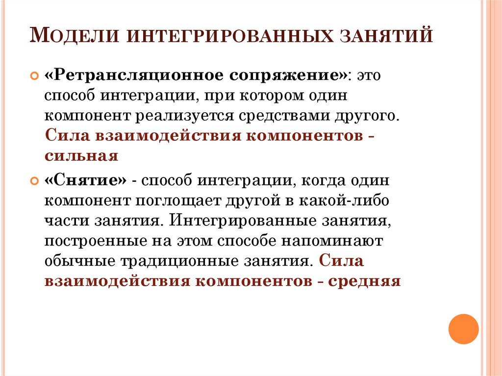 МОДЕЛИ ИНТЕГРИРОВАННЫХ ЗАНЯТИЙ«Ретрансляционное сопряжение»: это