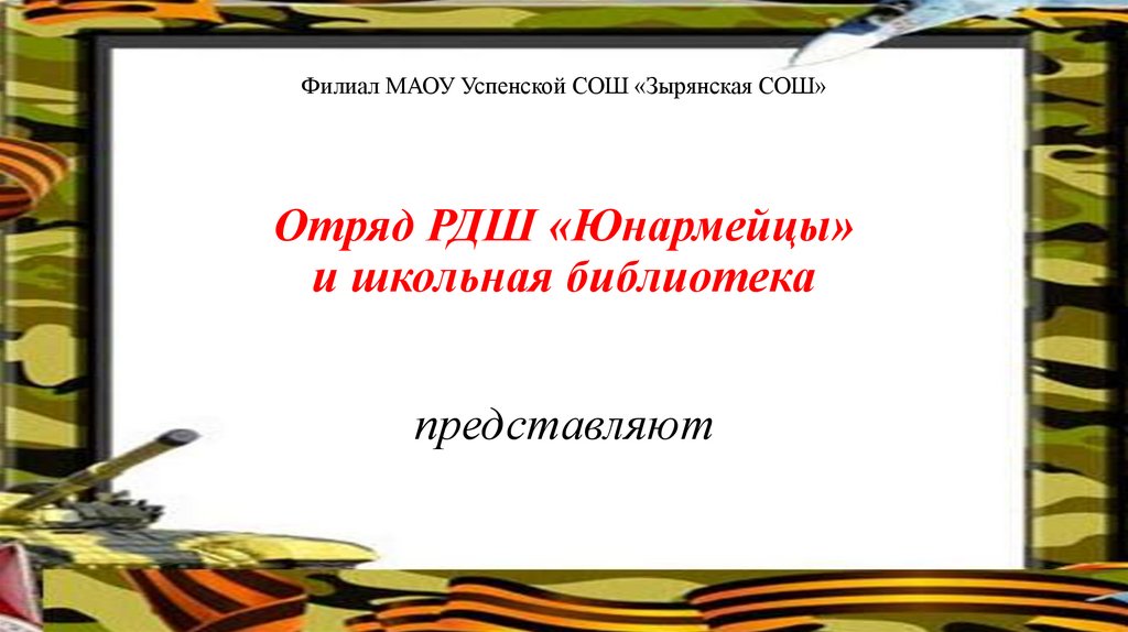 Филиал МАОУ Успенской СОШ «Зырянская СОШ»Отряд РДШ «Юнармейцы»