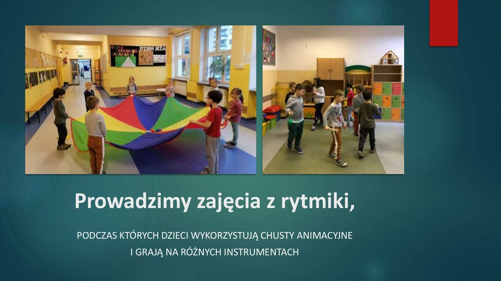 Prowadzimy zajęcia z rytmiki,PODCZAS KTÓRYCH DZIECI WYKORZYSTUJĄ CHUSTY ANIMACYJNE