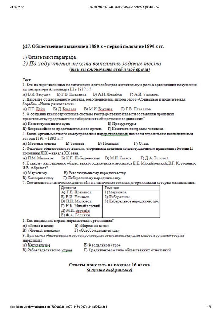 Общественное движение в 1880-х-первой половине 1890-хгг. Тест