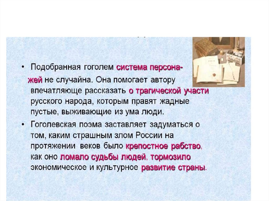 Подготовка к сочинению по поэме Н.В. Гоголя «Мёртвые души»