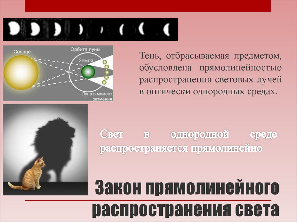 Тень, отбрасываемая предметом,обусловлена прямолинейностью