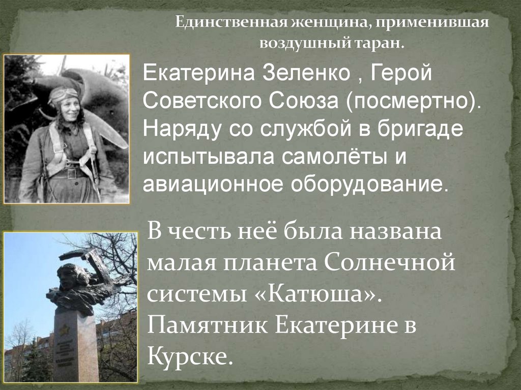 Екатерина Зеленко , ГеройСоветского Союза (посмертно).